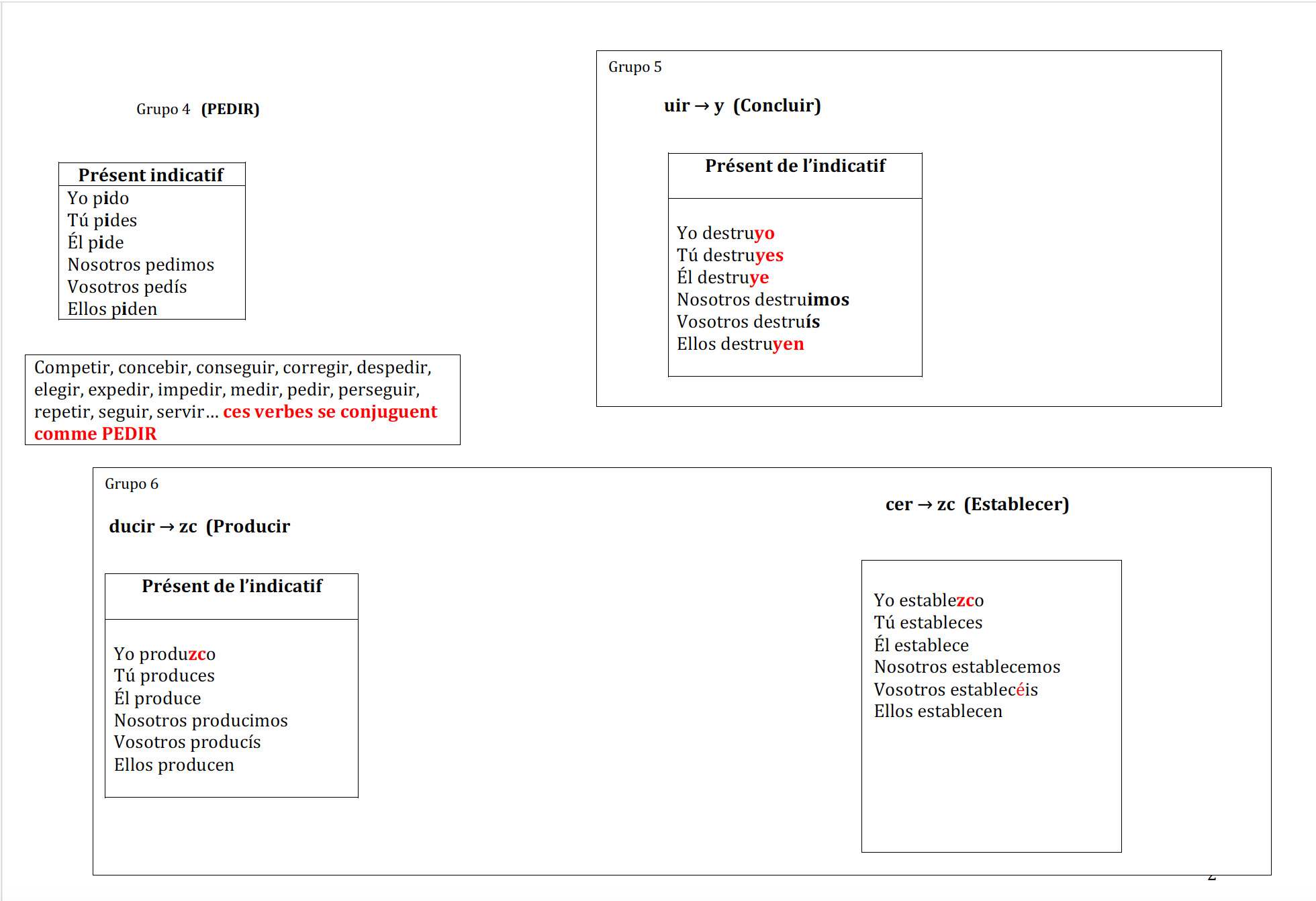Verbes irréguliers au présent :